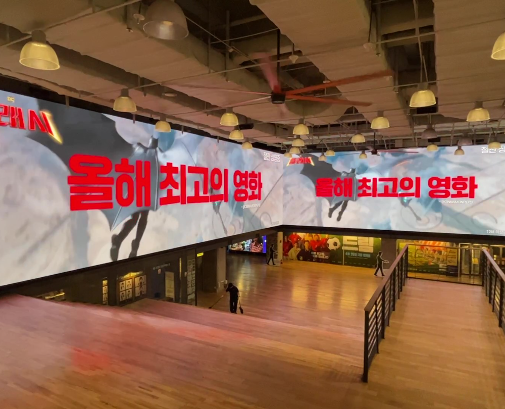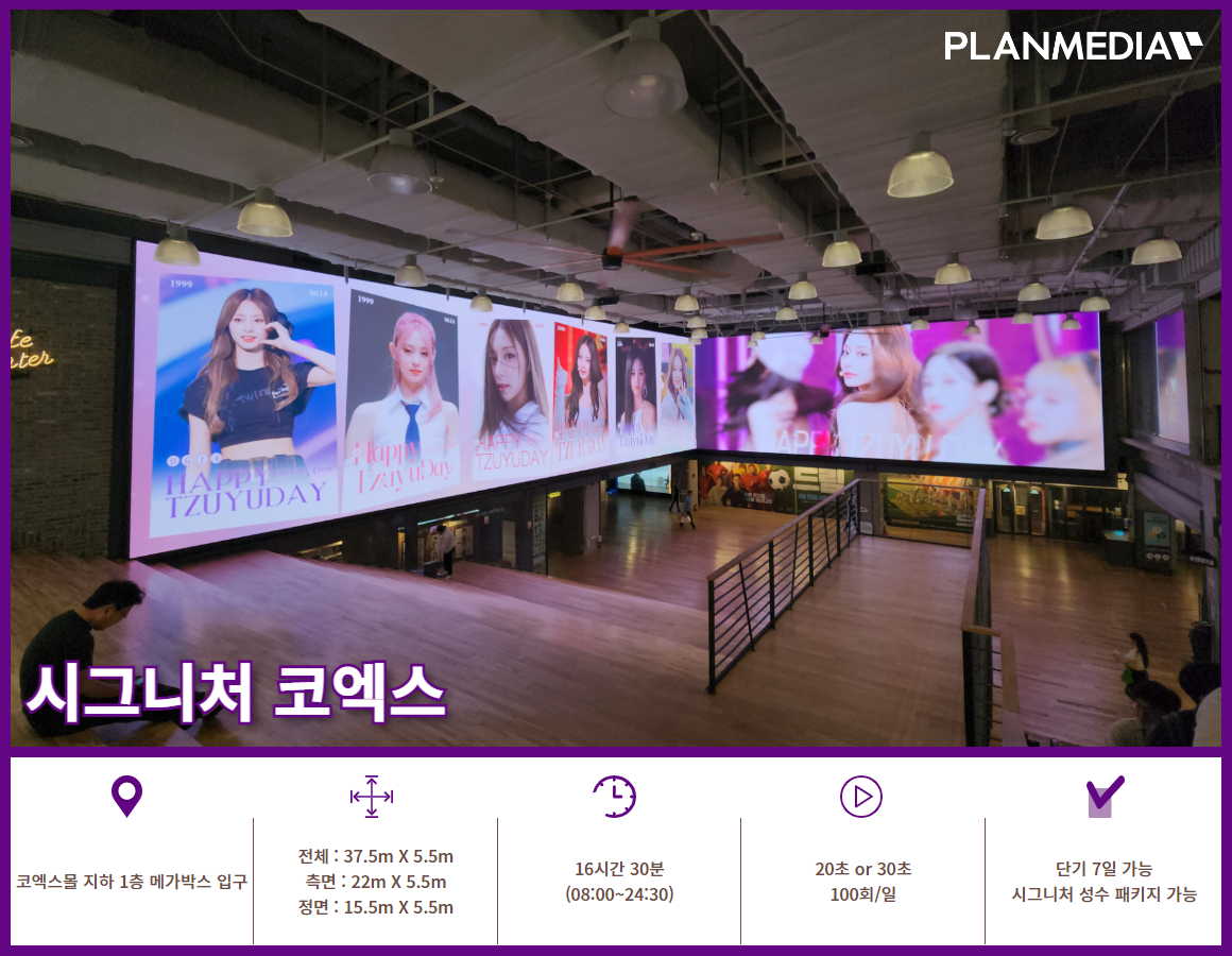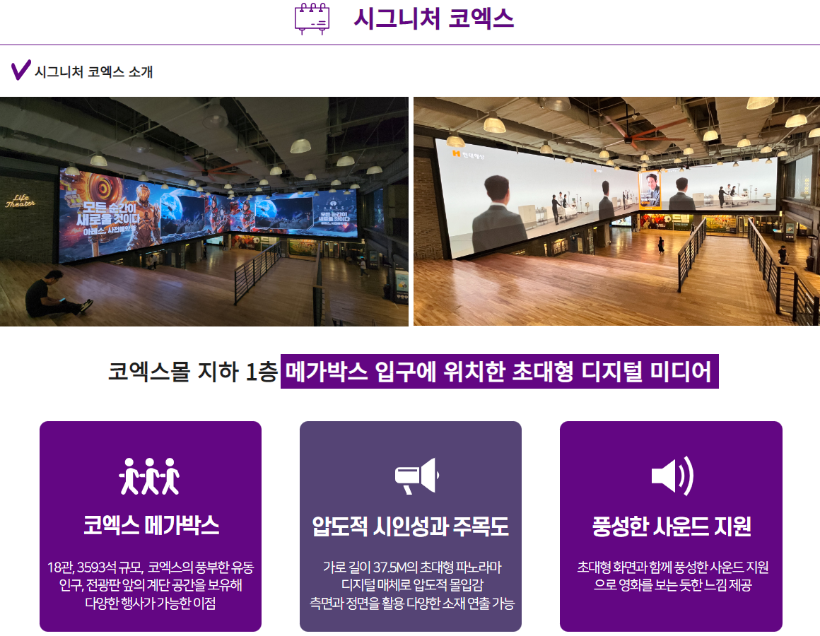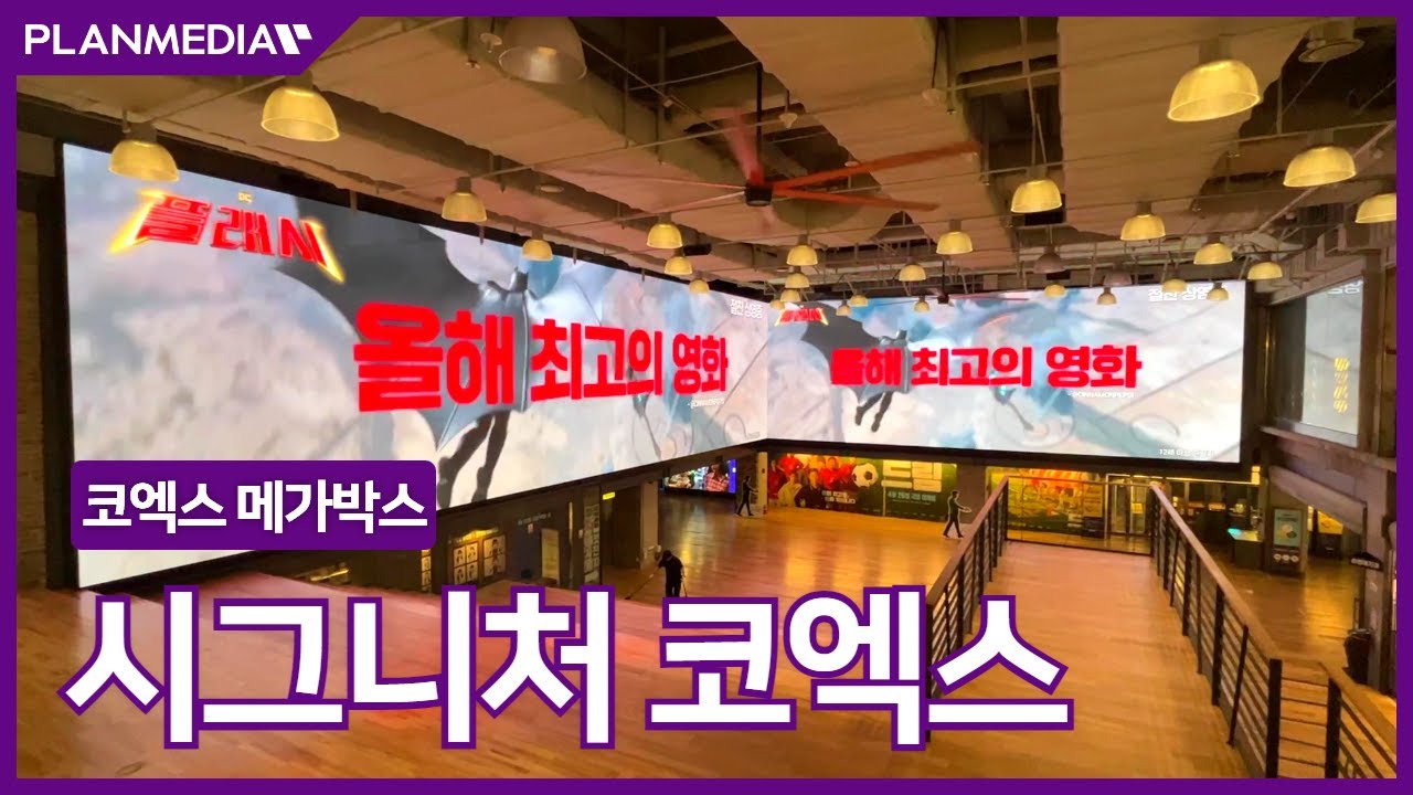코엑스몰 지하 1층에 있는 메가박스 입구에 설치된 대형 파노라마 전광판입니다.