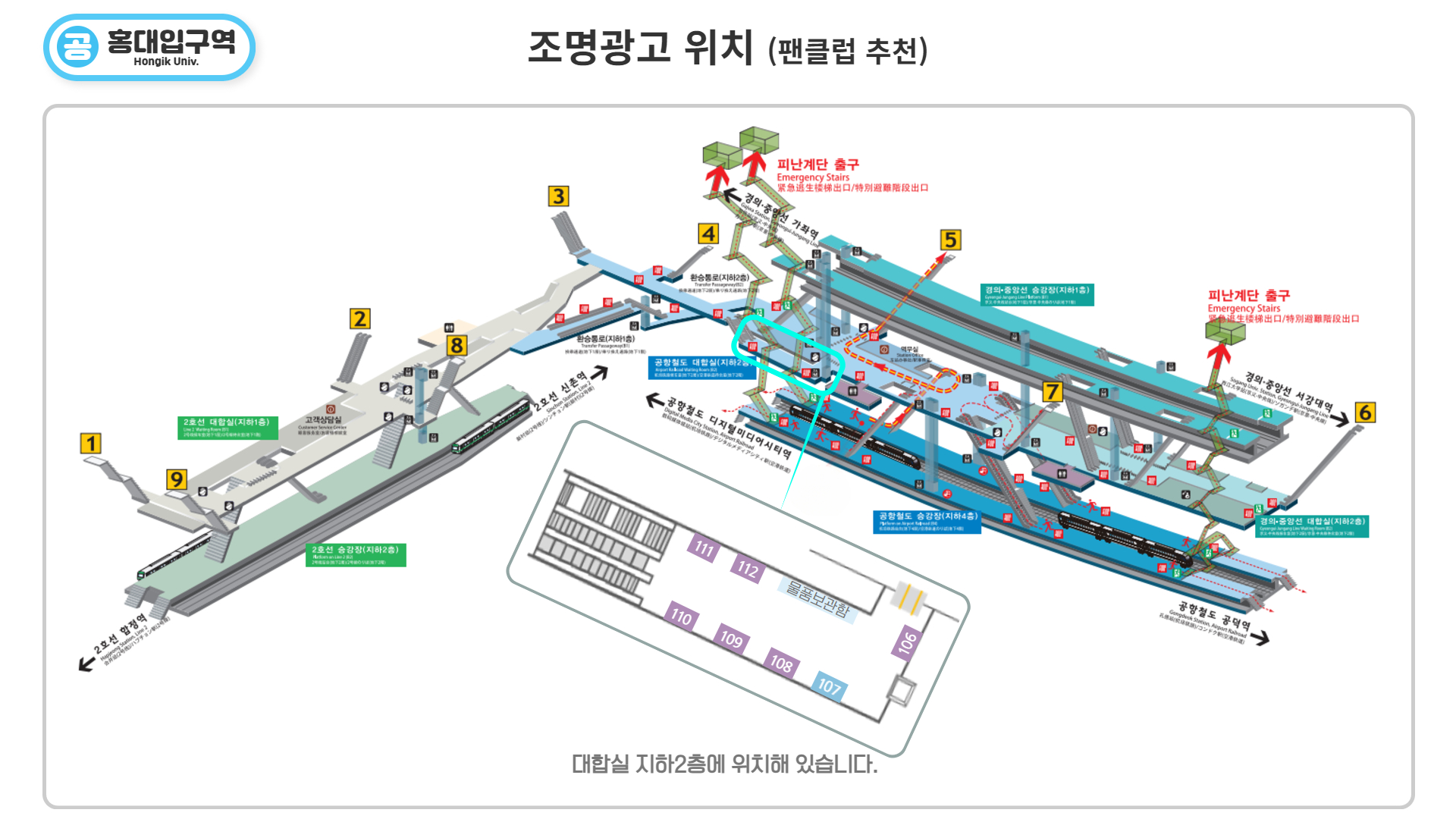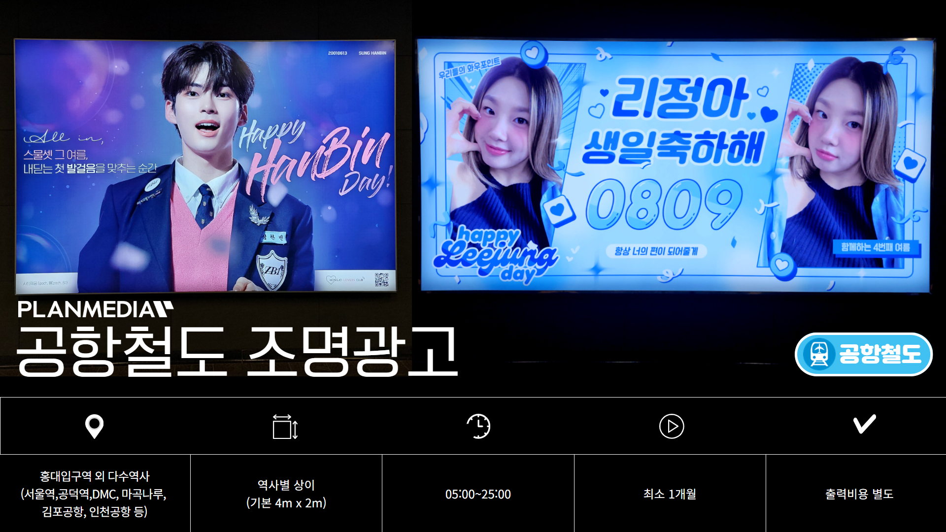 공항철도 홍대입구역 조명광고팬클럽 추천 위치