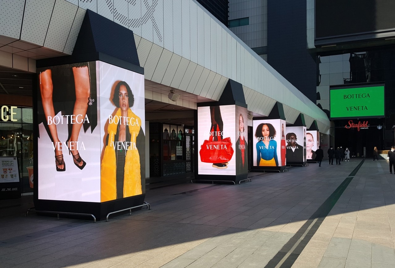 코엑스 브랜드에비뉴는 삼성역에서 코엑스로 향하는 곳에 있는 밀레니엄 광장에 위치한 디지털 보드 상품입니다.