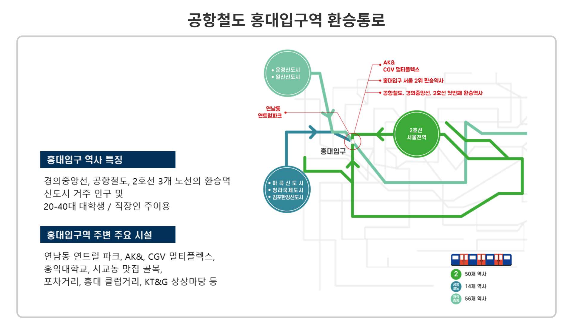 지하철 2호선 홍대입구역에서 공항철도, 경의 중앙선 방향으로 이동하는 환승통로 래핑입니다.