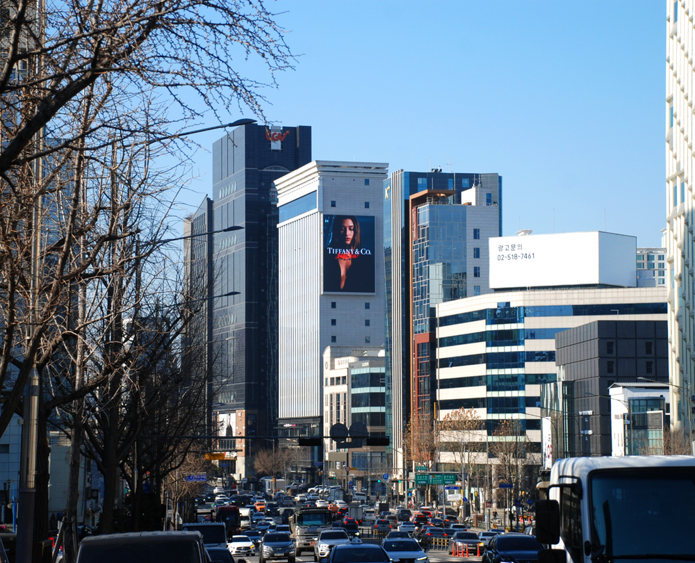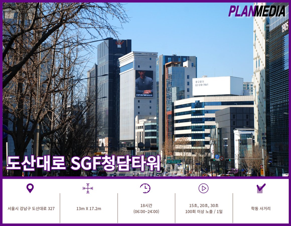 도산대로의 대표적인 명품 전광판으로 주로 명품, 패션 브랜드 광고가 많이 집행됩니다.