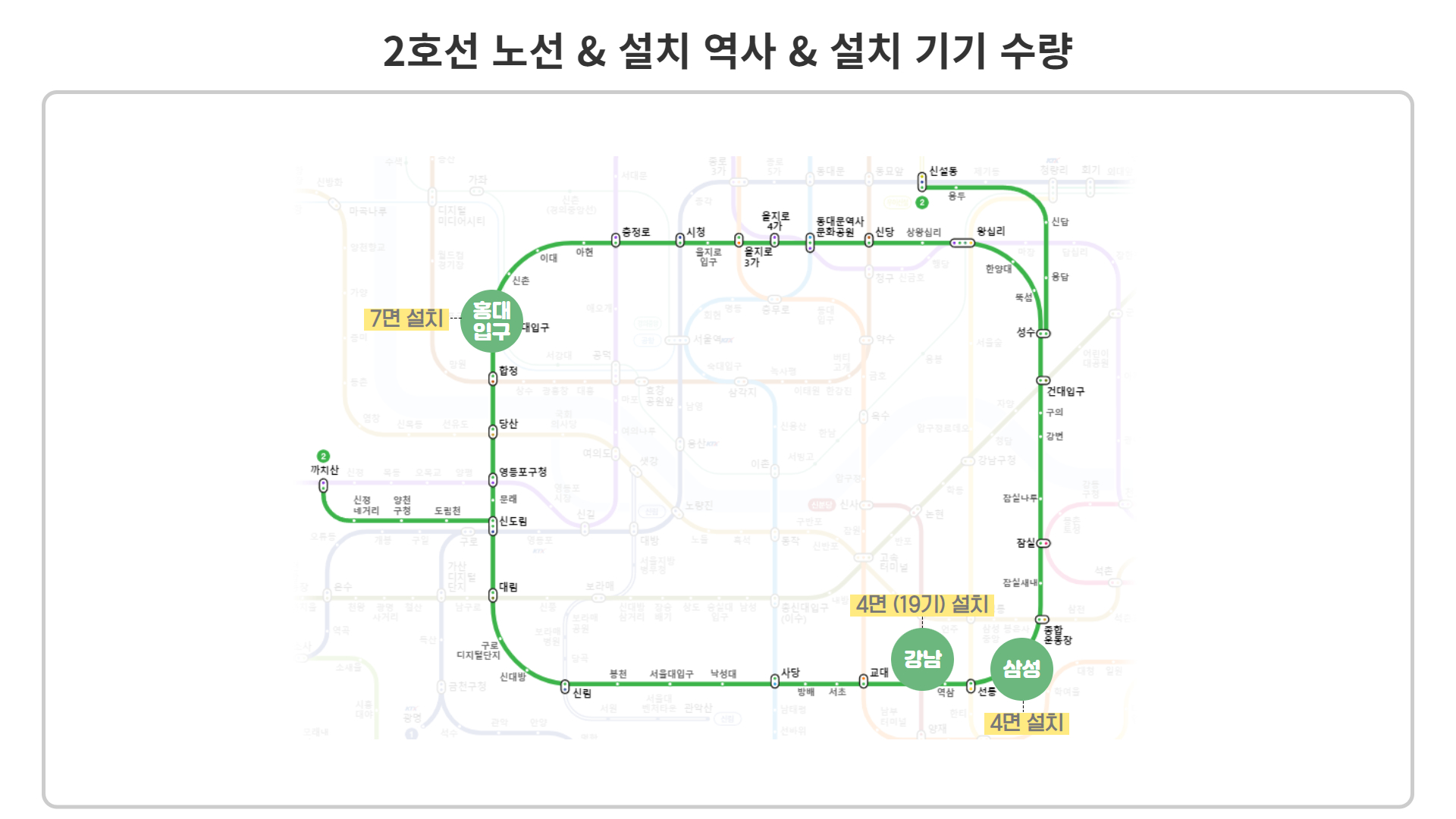2호선 3개 역사(홍대입구,삼성, 강남)