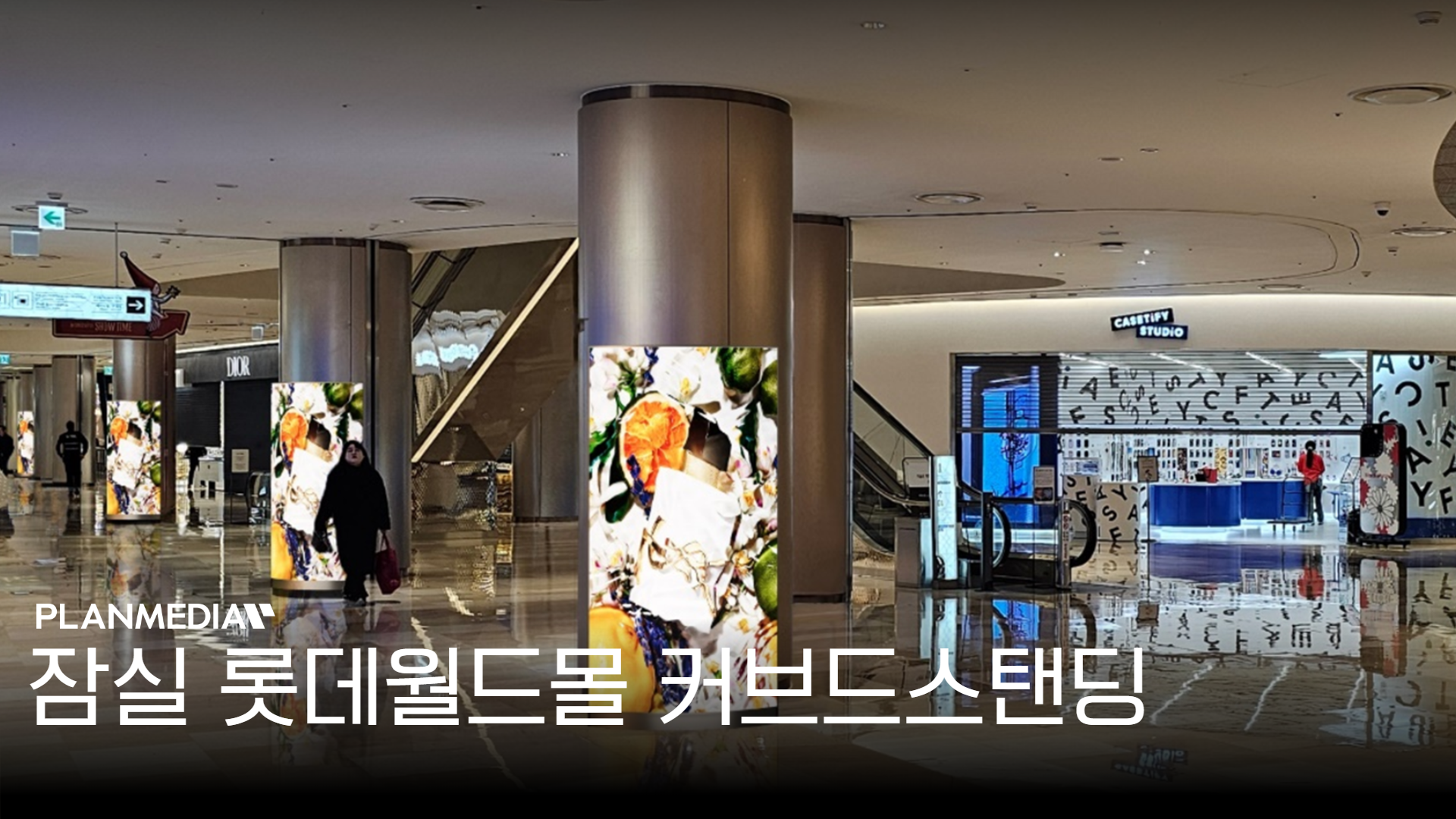 쇼핑몰 내부 주요 이동 통로에 자연스럽게 배치되어 방문객의 시야 높이에 맞춘 입체적 영상 노출이 가능하며, 몰 내 체류시간이 긴 고객층에게 반복적이고 직관적인 브랜드 노출 효과를 제공합니다.