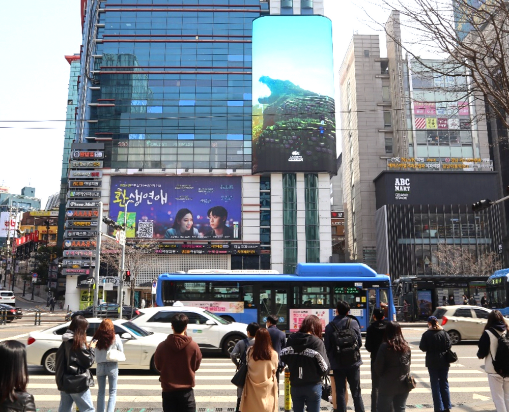 세로 길이 20M의 대형 직사각형 전광판으로 유동인구의 눈길을 사로잡습니다.