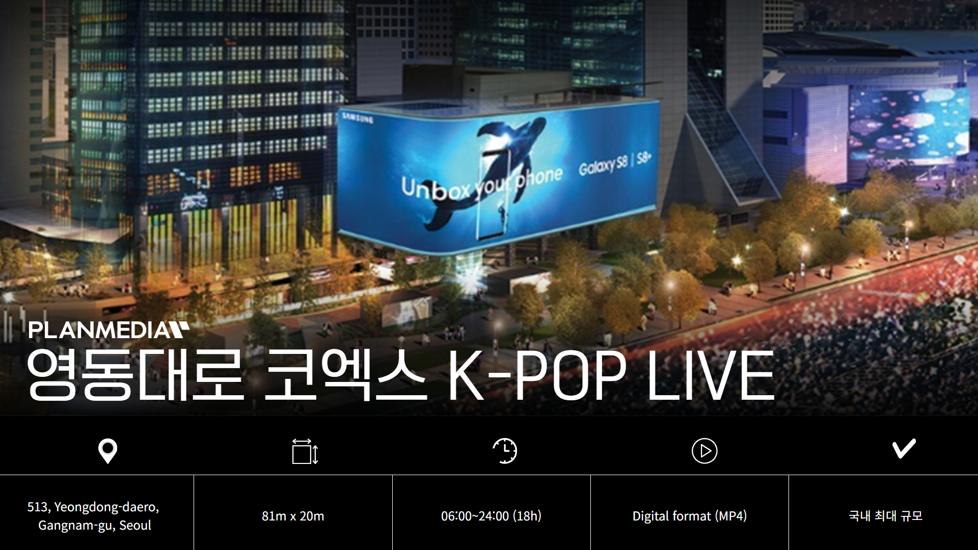 코엑스 K-POP LIVE는 단순한 광고 매체를 넘어, 전광판 업계에서도 '상징적인 미디어'로 꼽히는 공간입니다. 글로벌 한류 콘텐츠의 중심지로서, K-POP 문화를 세계로 확산시키는 디지털 허브의 역할을 지속적으로 이어가고 있습니다.