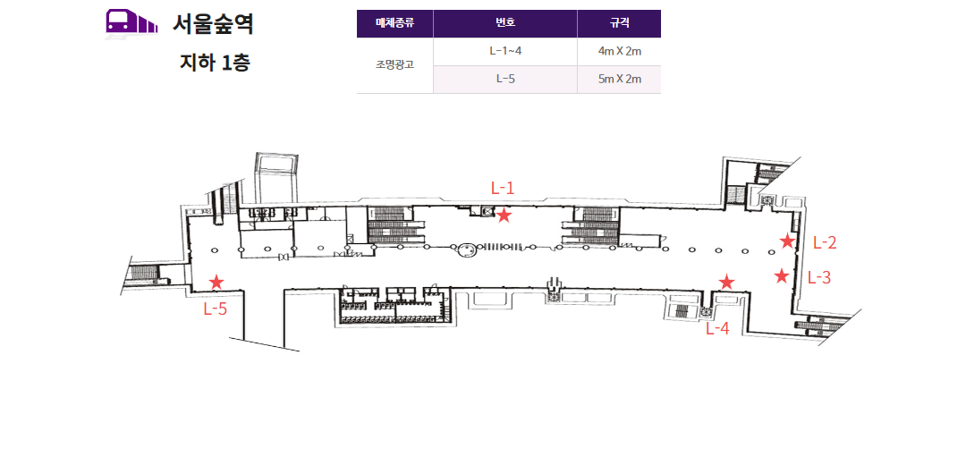 지하철 수인분당선 서울숲역 조명광고서울숲역 5번 조명광고